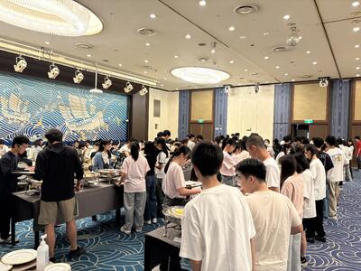 無事ホテルに全員到着しました。1日目の夕食です。おなかいっぱい食べましょう!