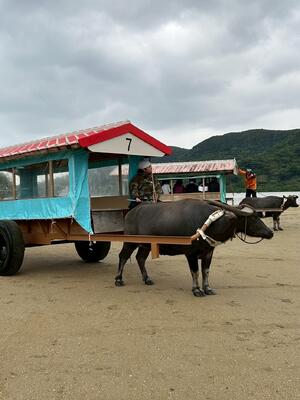 竹富島で星砂やヤドカリやサンゴを見つけたり、イルカに触れ合ったり、鍾乳洞を探索したり、サンドブラストを体験したりと、石垣島を楽しみました。