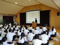 文系の学部に比べて、学んだ内容と将来の進路(就職先)との結びつきが強いこと、近年では学部横断的な研究の態様が進んでいることなど、文理選択にあたって貴重な情報を数多く提供していただきました。2学期に迫った文理選択に、役立ててくれることを期待しています。