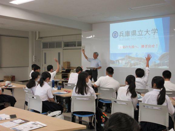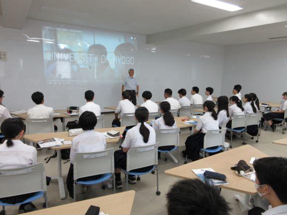 大学本部教育企画課から大川真澄様をお招きし、説明会を実施しました。3年生およそ40名が参加しました。大学の歴史、立地、学部編成などについて、わかりやすく説明していただきました。また、6学部それぞれについて特徴を教えていただきました。特に、どの学部も教員1人当たりの学生数が少なく、学生一人一人に対応できる環境が整っており、地域や企業からの評価も高く、就職も非常に良いこともわかりました。各学部の入試においては、英語では長文読解力、数学では微分積分、さらに普段の授業等で身につける知識の大切さが強調され、3年生にとってこれからの受験勉強の指針になる話もしていただきました。
