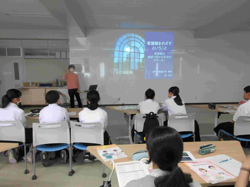 神戸市看護大学の林先生をお招きしました。内容は、看護職の資格と役割、看護職を目指す心構え、看護職への道、看護職の就職先などでした。参加した生徒は、看護への理解が深まったことと思います。終盤には面接試験で気をつけることも教えていただきました。変につくろわず、自分らしさを出すこと。そして、そのためには普段からの誠実さが大切であることを教えていただきました。林先生、昨日はどうもありがとうございました。