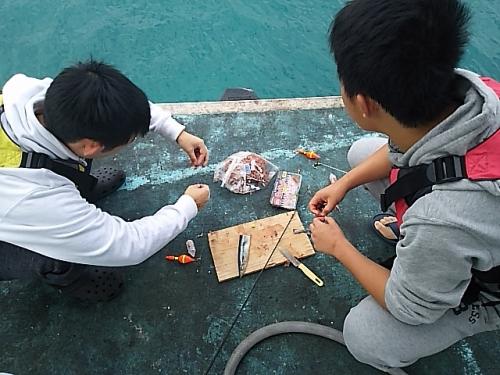 こちらも魚釣り、餌の準備をしています。